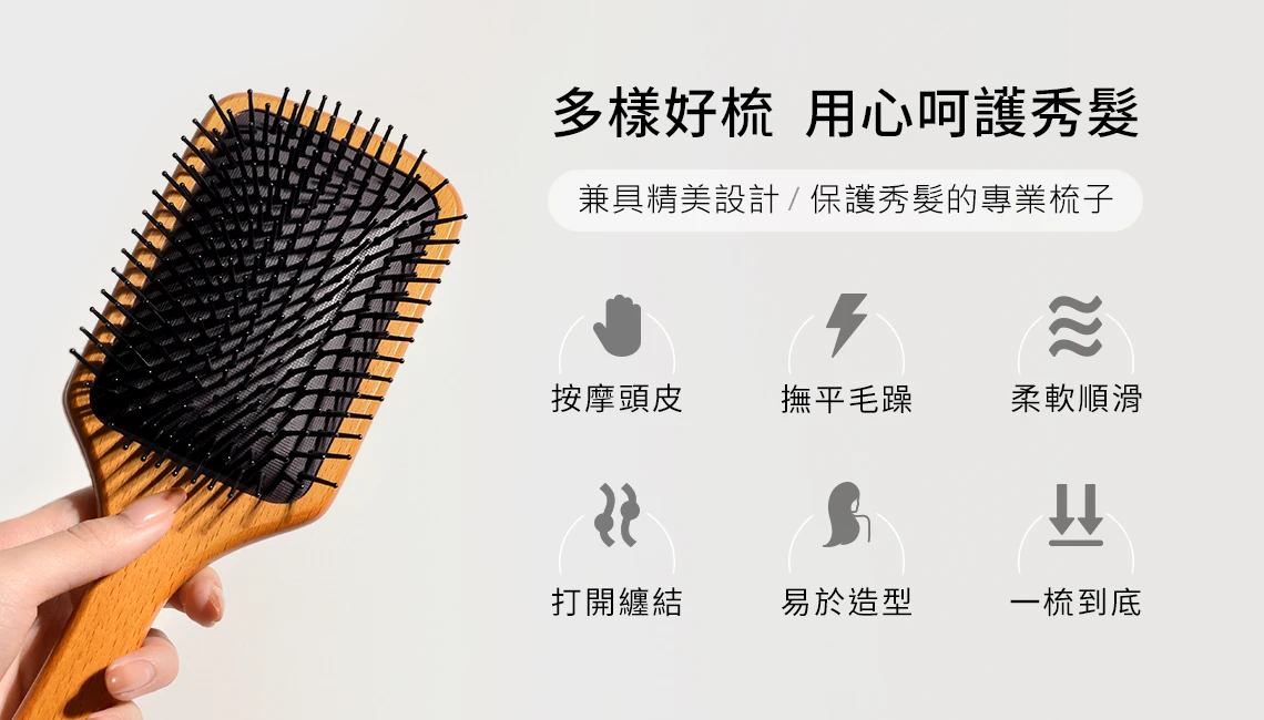keller 森詠木香 原木大型抗糾結氣墊梳 1支