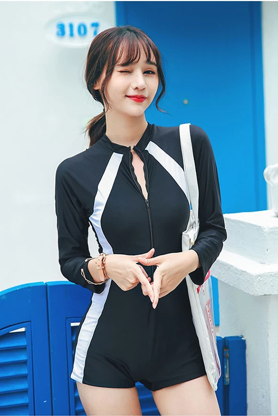 VEN長袖連身四角泳衣