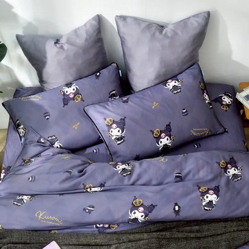 Abelia 三麗鷗授權 暗黑KUROMI 60支天絲床包枕套/被套/枕套 - 兩用被 單人