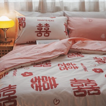 櫻花粉60支柔軟親膚純棉床包床單枕頭套被套雙人床四件套