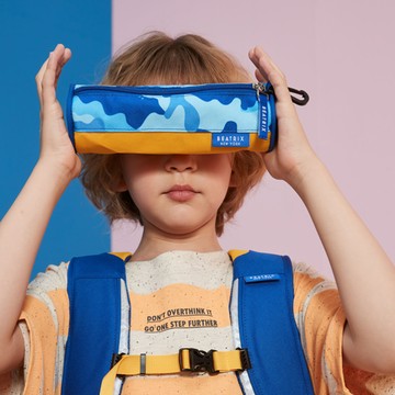 美國 BEATRIX NEW YORK 美式休閒兒童防潑水圓桶文具筆袋 - 迷彩紫