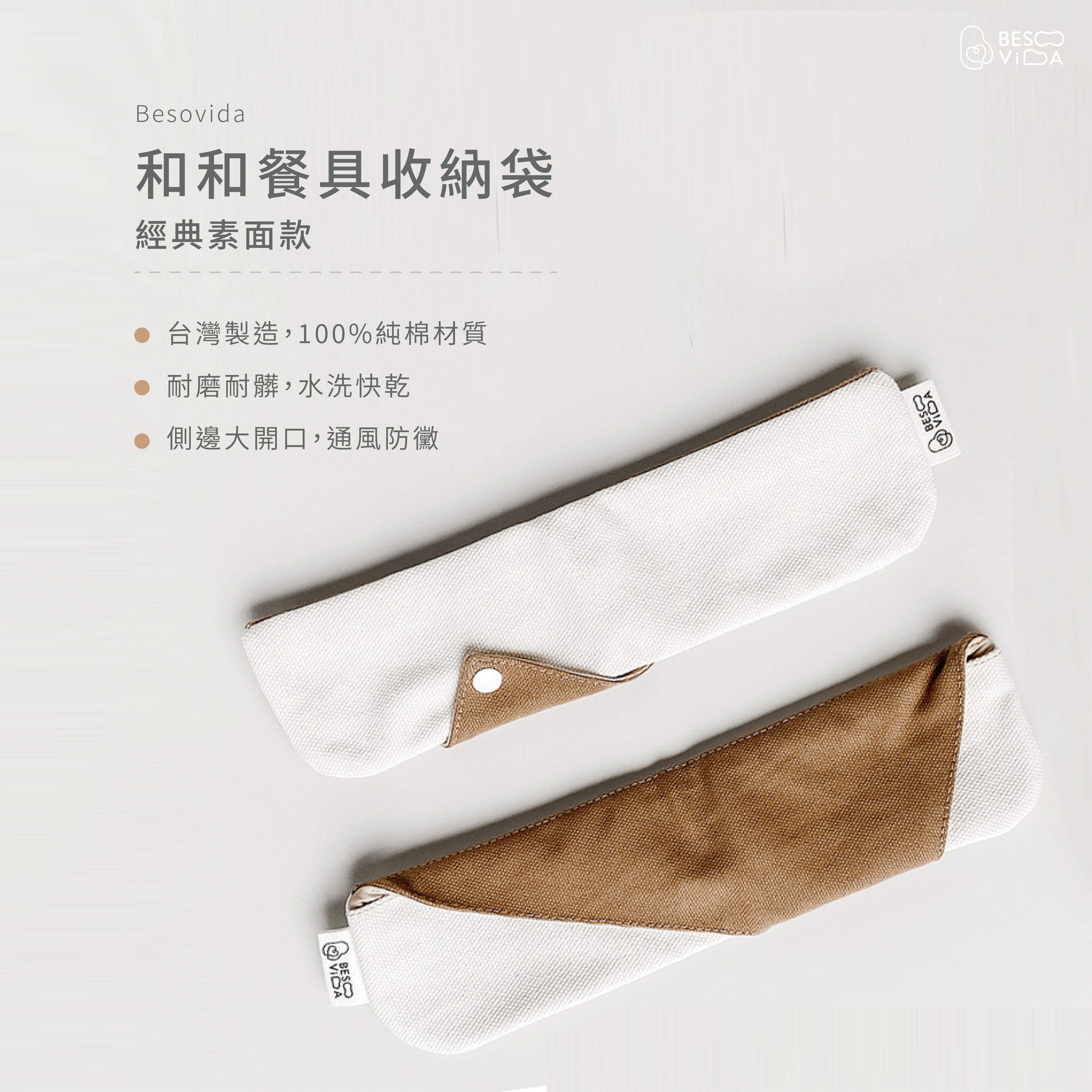- 名稱:BesoVida矽膠叉匙收納袋禮盒組 - 素面款