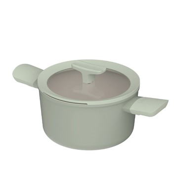 BergHOFF 貝高福 Balance陶瓷塗層不沾鍋雙耳含蓋湯鍋 BHBL-W24 月霧灰色 1個 24cm