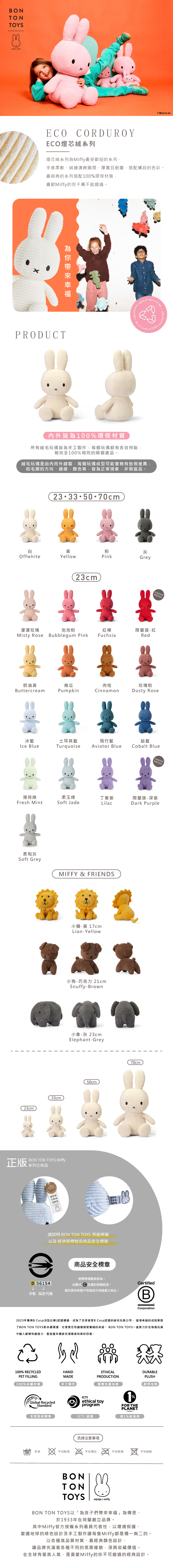 品名:BON TON TOYS Miffy米菲兔ECO燈芯絨填充玩偶-白