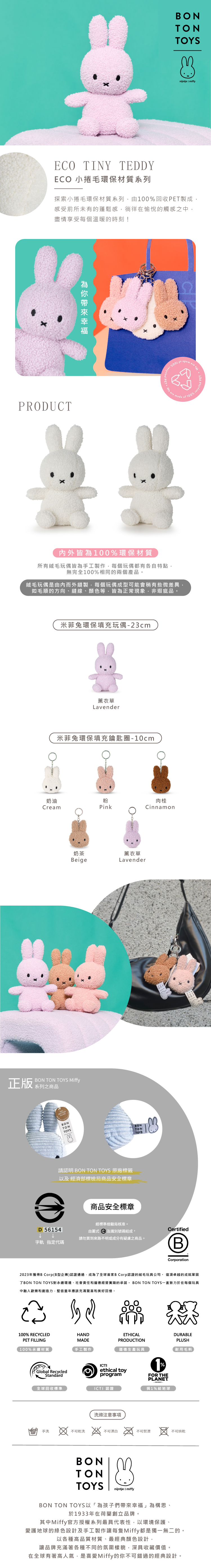 BON TON TOYS|Miffy米菲兔環保毛絨鑰匙圈-8cm(三色)|收禮者自選顏色