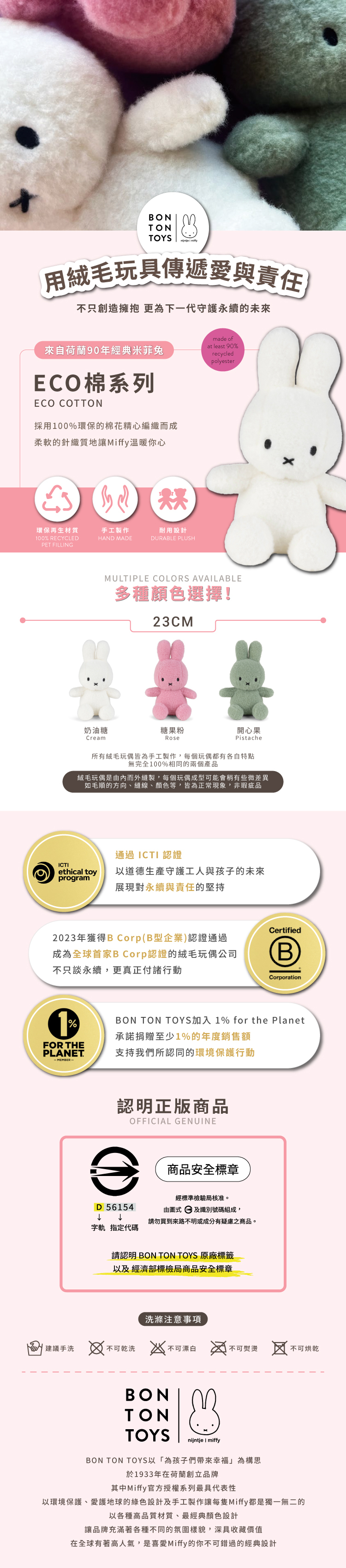 【正版總代理合法進口】BON TON TOYS|Miffy米菲兔ECO棉填充玩偶-23CM(三色)