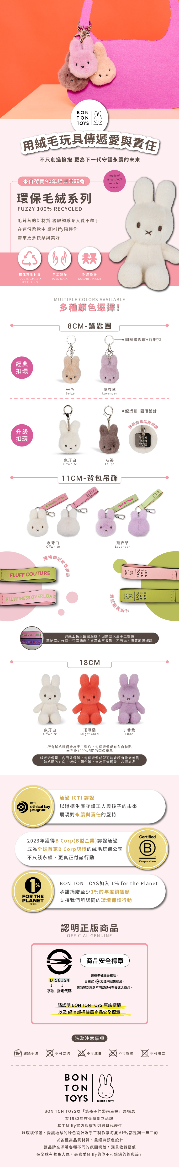 品名:BON TON TOYS Miffy米菲兔環保毛絨鑰匙圈-8cm