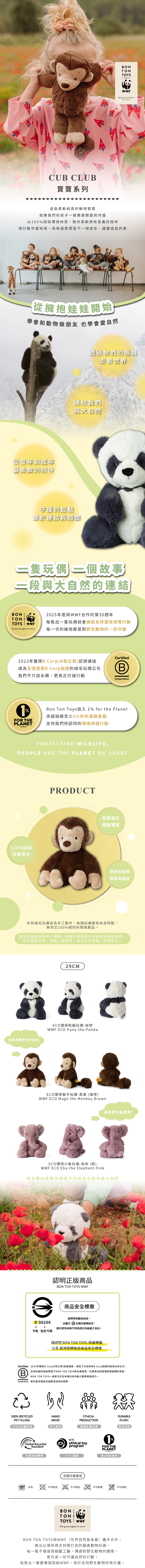 BON TON TOYS x WWF|ECO環保猴子玩偶-馬果 咖啡 29cm