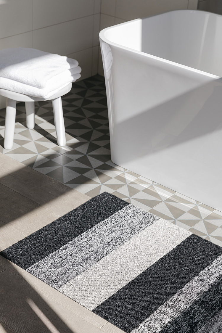 相鄰兩種不同色調交錯編織,MARBLED系列為垂直三色條紋玄關墊,完美呈現了繁複的紋理及層次感。