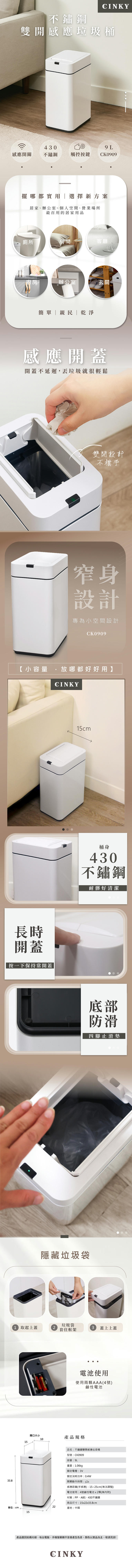 CINKY 不鏽鋼雙開感應垃圾桶(9L) CK0909 白色
