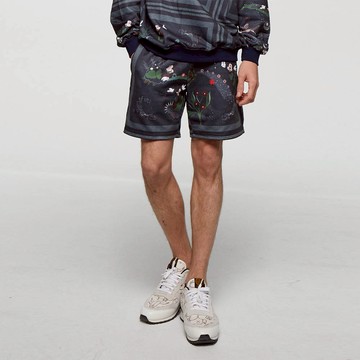 [Disney聯名款]星夜米奇 鬆緊腰頭短褲(皇家綠) - S