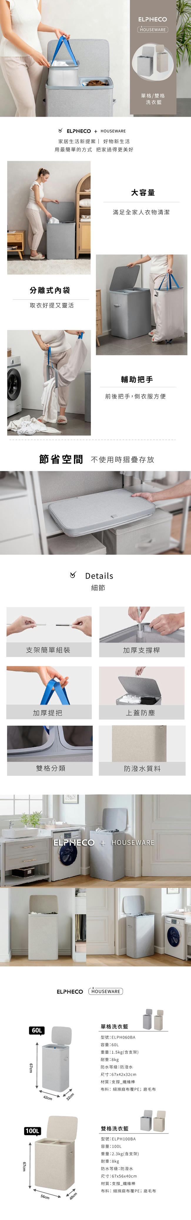 ELPHECO 雙格洗衣籃 ELPH100BA - 灰色