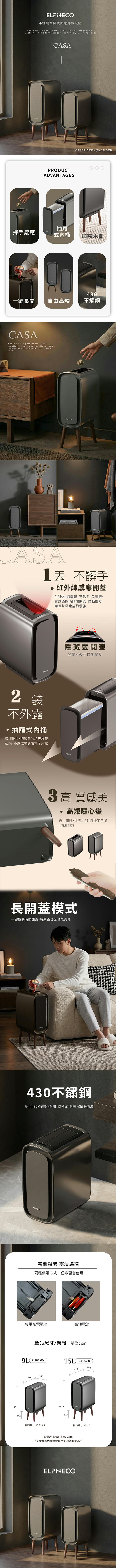 (組)伊登ABS對開感應不鏽鋼垃圾桶15L+20L 白
