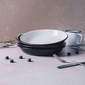 - 琺瑯外層以人工上釉,收邊的部分不易塗抹,因此外觀常有不均勻的「手工感」,成為琺瑯餐具的一大特色。