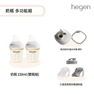 品名:【hegen】 寬口奶瓶 多功能組(寬口奶瓶150ml (雙瓶組)+食物分格儲存組+水杯蓋)