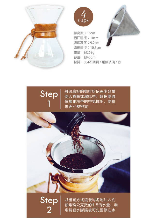 ■材質:304不銹鋼 / 耐熱玻璃 / 竹