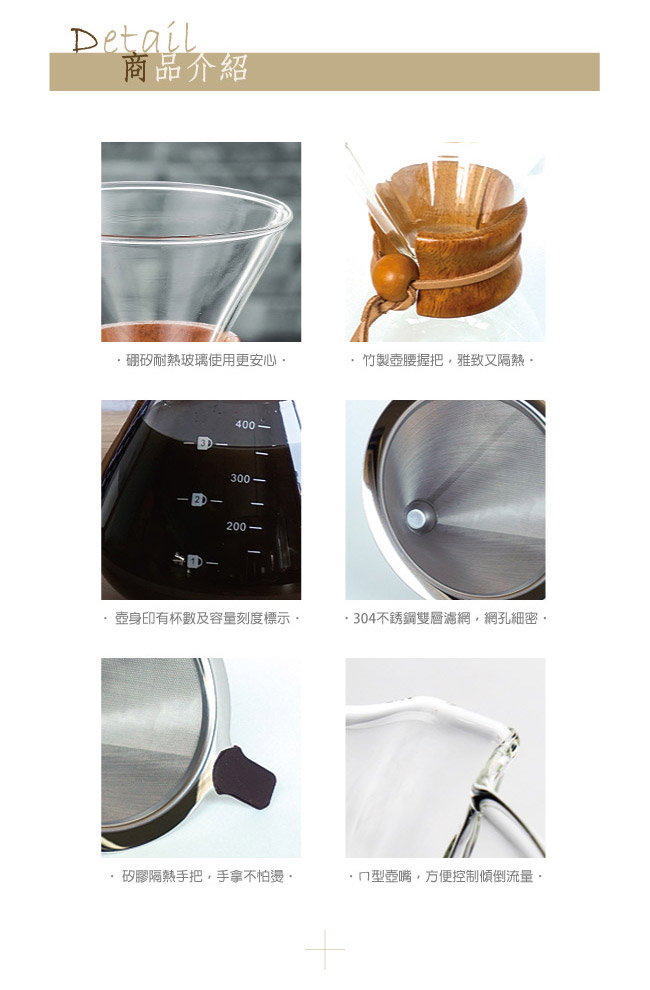 茶咖美器一人玻璃咖啡分享壺錐形玻璃帶把手手沖美式掛耳咖啡壺