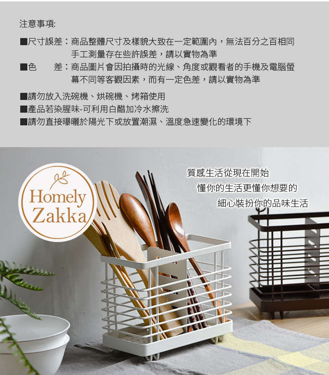 注意事項:■尺寸誤差:商品整體尺寸為手工測量有少許誤差,請以實物為準■色差:商品圖片會因拍攝時的光線、角度或觀看者的手機及電腦螢幕不同等客觀因素,而有一定色差,請以實物為準■鐵藝製品各個銜接處,手提部分接口無法均勻上漆並且可能會有摩擦成形的掉漆或是小刮痕屬於製作工藝現象■本產品經過防鏽加工處理,受外力衝擊或不適宜的條件及環境下使用,如使用金屬刷清洗等,皆可能導致塗層脫落而生鏽,請小心使用■若須清潔請以海綿刷清洗即可
