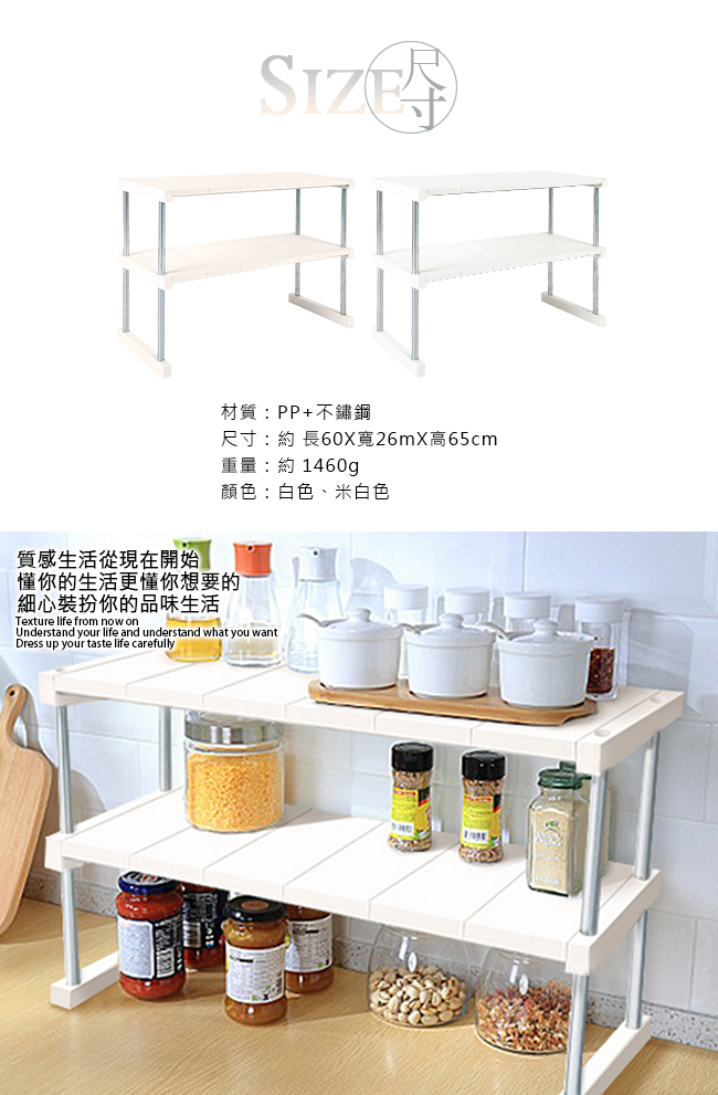 Homely Zakka 日式簡約多功能雙層置物架_加長款(兩色任選) - 米白色