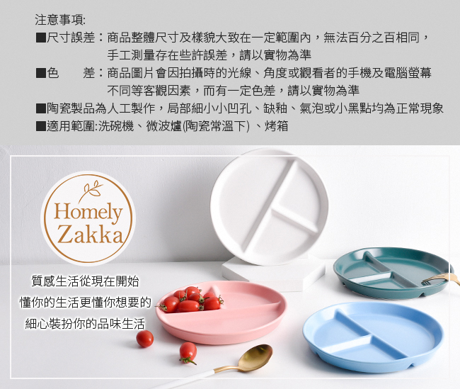注意事項:■尺寸誤差:商品整體尺寸及樣貌大致在一定範圍內,無法百分之百相同,手工測量存在些許誤差,請以實物為準■色差:商品圖片會因拍攝時的光線、角度或觀看者的手機及電腦螢幕不同等客觀因素,而有一定色差,請以實物為準■陶瓷製品為人工製作,局部細小小凹孔、缺釉、氣泡或小黑點均為正常現象■適用範圍:洗碗機、微波爐(陶瓷常溫下) 、烤箱
