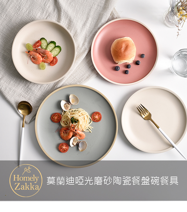 Homely Zakka 啞光磨砂陶瓷餐盤碗餐具3件組_4色任選 - 莫蘭迪白