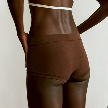 TENCEL™ Modal混紡蠶絲提供柔軟的垂墜感給予舒適且親膚的高包覆性。中低腰圍的平口四角設計帶來安心與舒適感,並讓用途更多元。