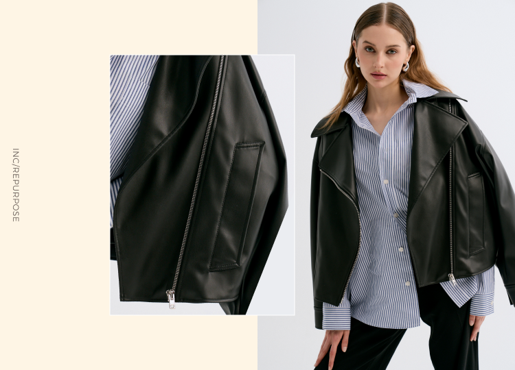 INC/REPURPOSE 環保女裝精選日本素皮革鋪棉外套 - M