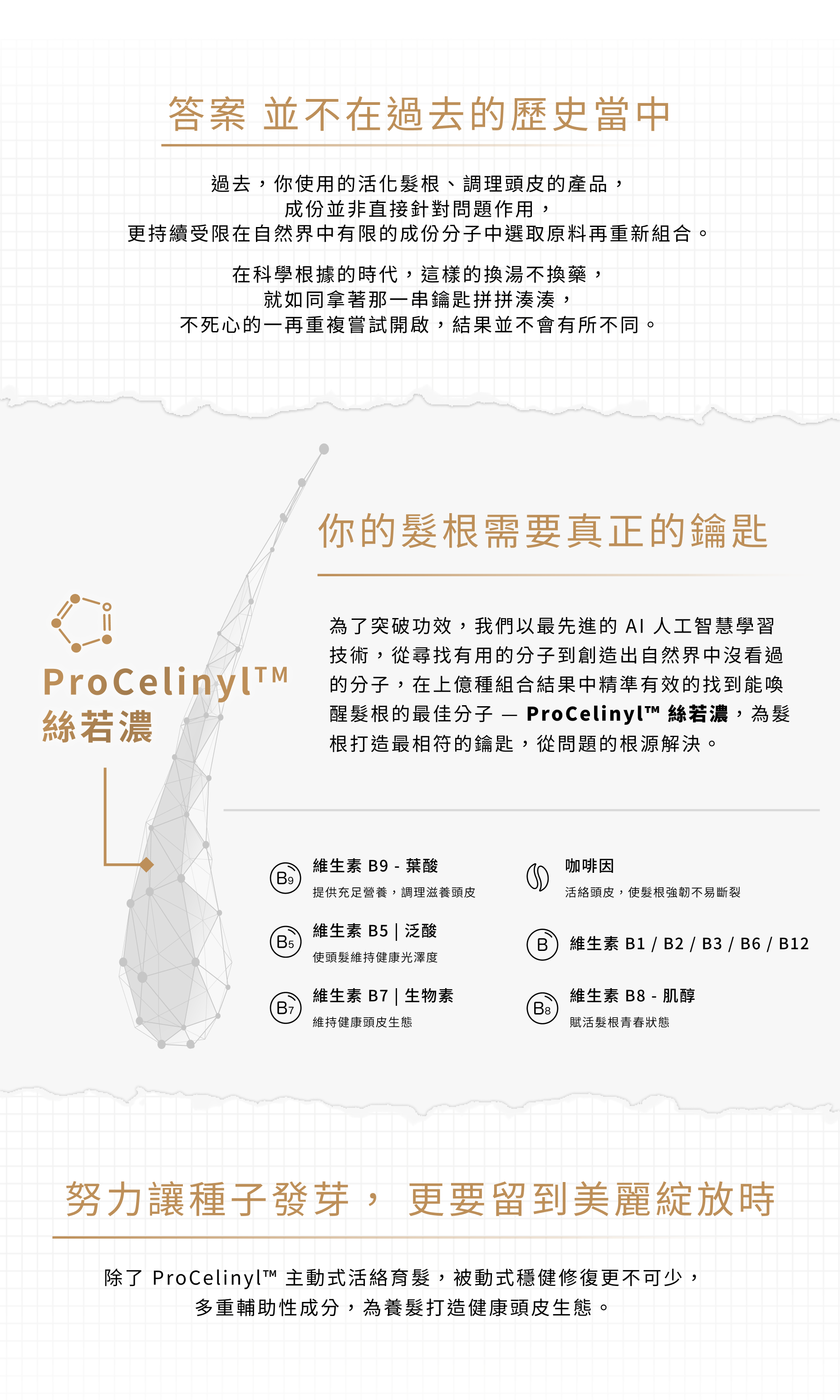 全成分名稱:Water, Dimethyl Isosorbide, Citric Acid, Sodium Bicarbonate, Arginine, Propanediol, Butylene Glycol, Propylene Glycol, Phenoxyethanol, Sodium Citrate, Alcohol Denat, Serenoa Serrulata Fruit Extract, ProCelinyl™ (Furanyl Methylthio Methylsulfanyltriazole), Caprylyl Glycol, Panthenyl Ethyl Ether, Fomes Officinalis (Mushroom) Extract, Maltodextrin, Inositol, PEG-40 Hydrogenated Castor Oil, Lactose, Lactic acid, Milk Protein, Nicotinamide, Paeonia Suffruticosa Root Extract, Dehydroacetic Acid, Tilia Cordata Flower Extract, Althea Officinalis Root Extract, Calcium Pantothenate, Arnica Montana Flower Extract, Acetyl Methionine, Acetyl Cysteine, Pyridoxine Hydrochloride, Riboflavin, Thiamine Mononitrate, Folic Acid, Biotin, B12 Vitamin
