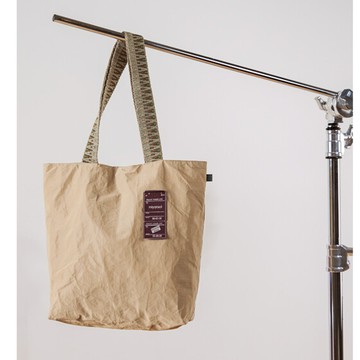 提袋上縫製跳色大布標,是品牌的招牌特色,