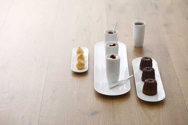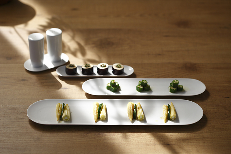 平、淨、圓潤、捨棄多餘線條,讓用者與觀者關注器皿與食物本身。