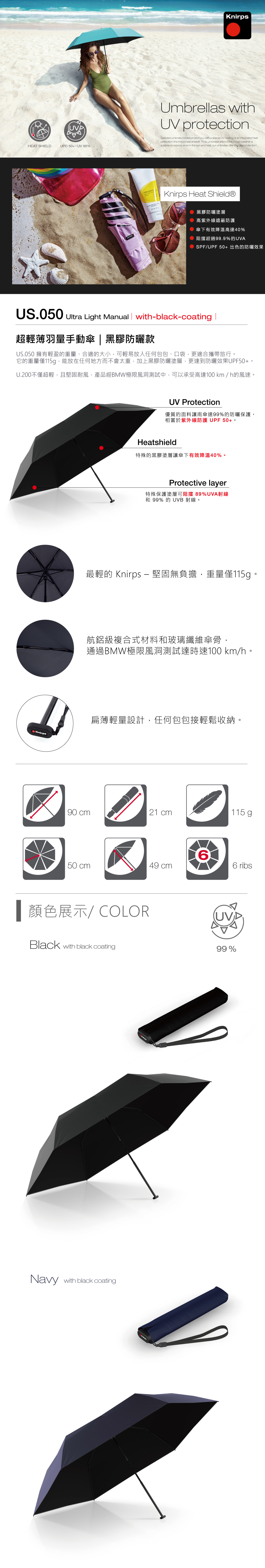 Knirps®德國紅點傘|U.200 超輕薄黑膠防曬自動傘-Black