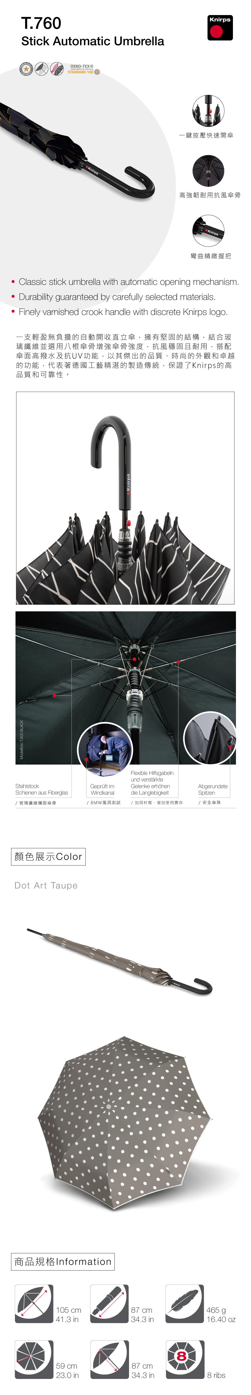 Knirps德國紅點傘|T.760 直立式自動傘-Dot Art Taupe