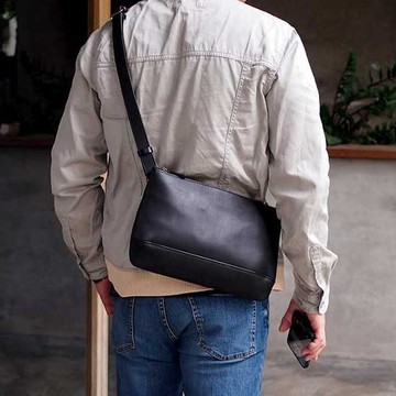 日本率性俐落型牛革X尼龍側背/胸包Made in Japan by Less design