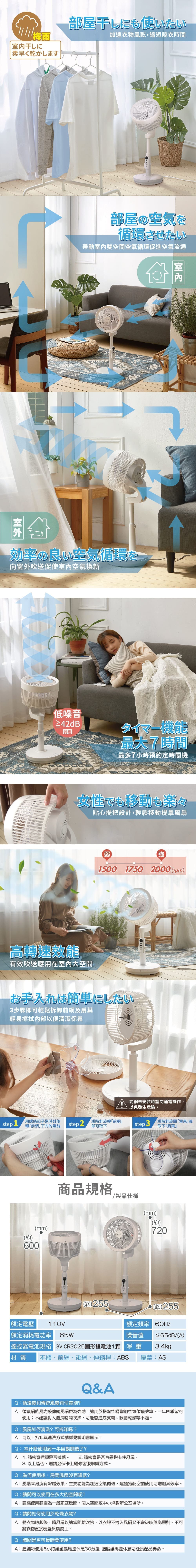 【正負零】12吋 3D直流循環風扇 (XQS-G630)