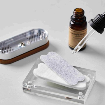 3. 在厚墊(白色墊)上塗抹約5ml精油,並在薄墊(灰色墊)上滴少量。