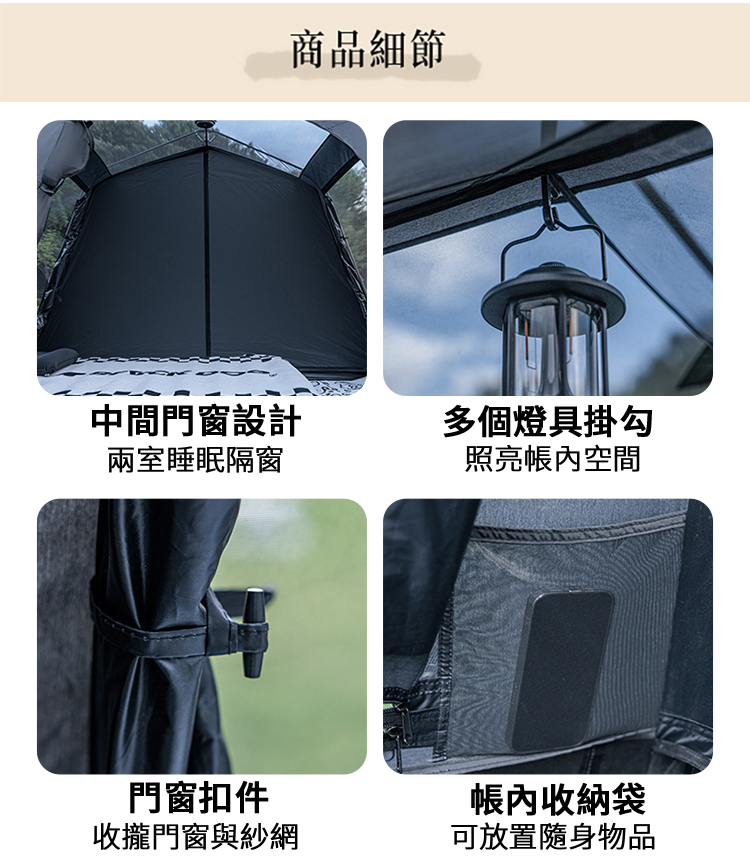 戶外露營大帳篷兩室一廳公園野營用品裝備便攜式折疊防曬兩房一廳