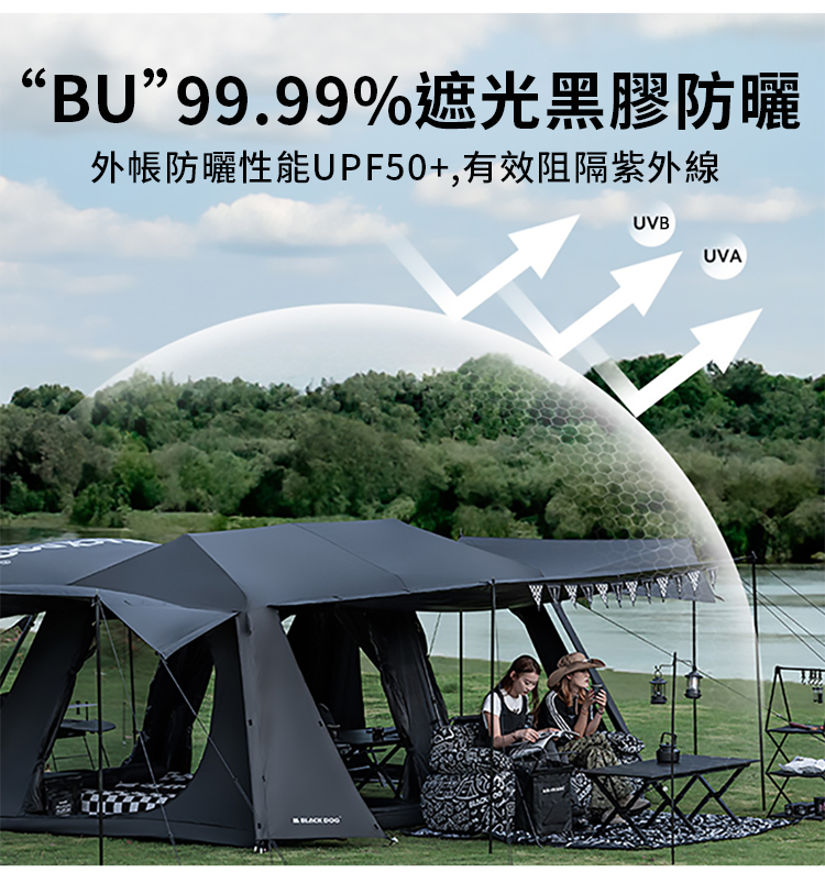 【台灣公司 可開發票】blackdog黑狗戶外帳篷全自動速開六邊形黑膠折疊野營露營防曬防雨