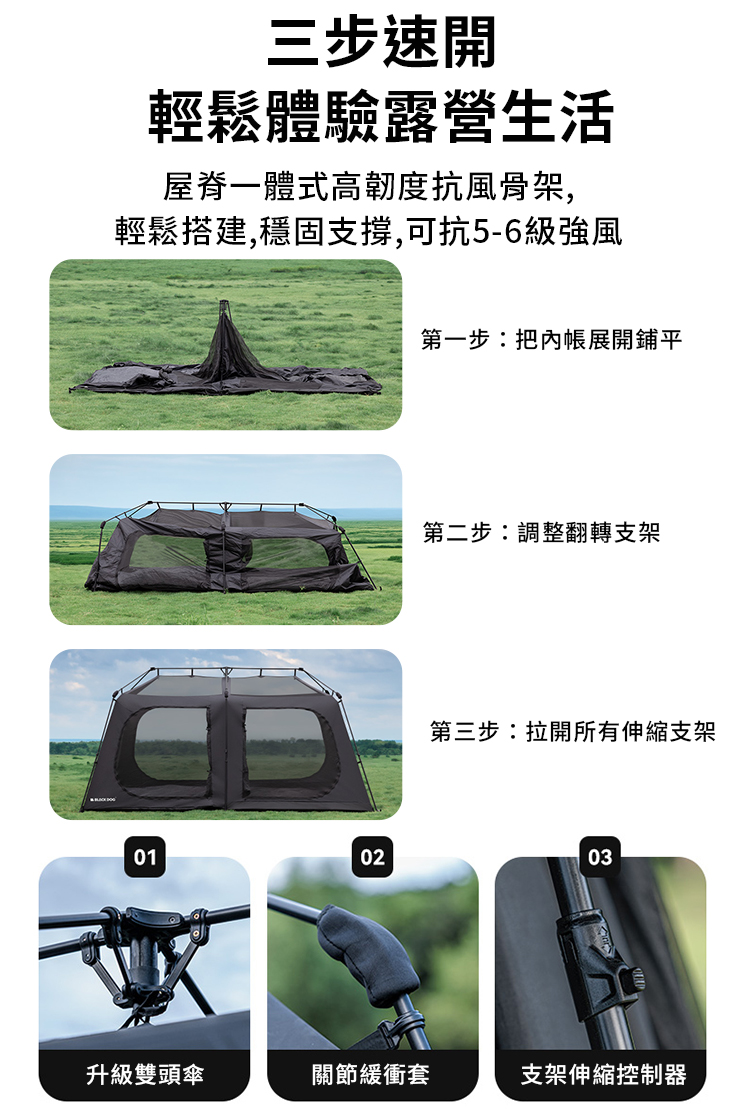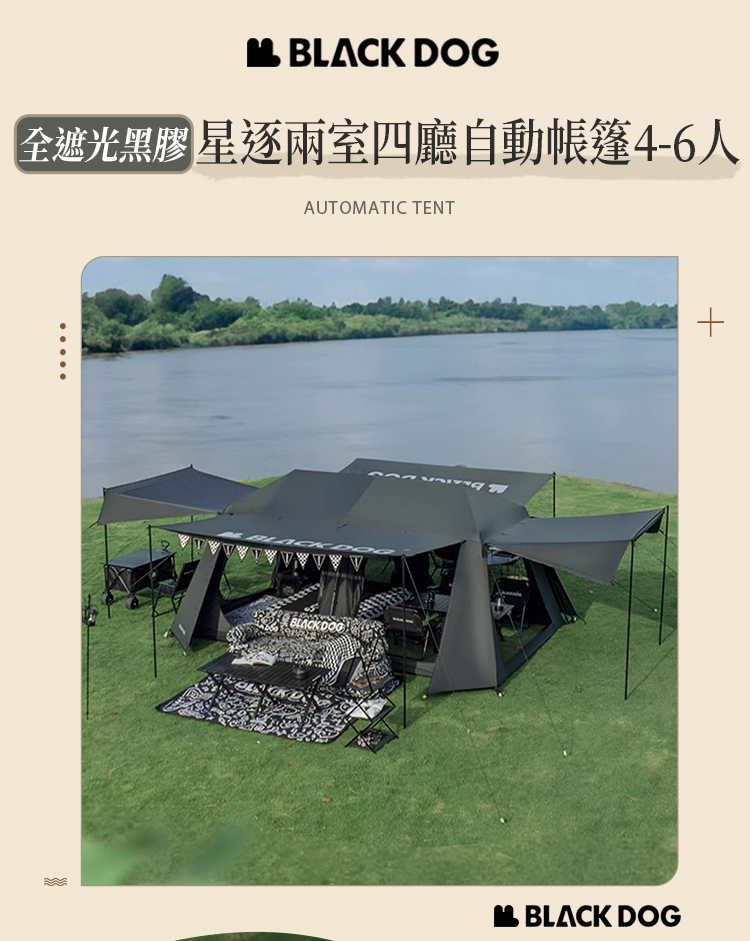 Blackdog 全遮光黑膠 星逐兩室四廳自動帳篷4-6人 ZP012