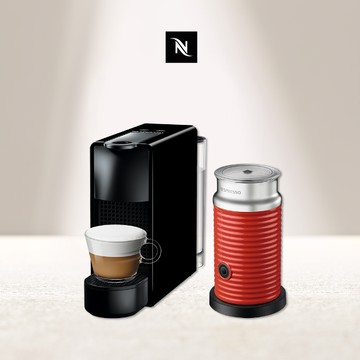 【Nespresso】膠囊咖啡機 Essenza Mini 鋼琴黑+A3紅色奶泡機組合