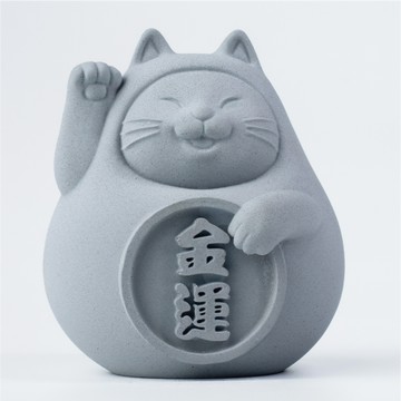 【泥研製所】清水灰 胖胖招財招福貓 (中) - 胖胖金運貓