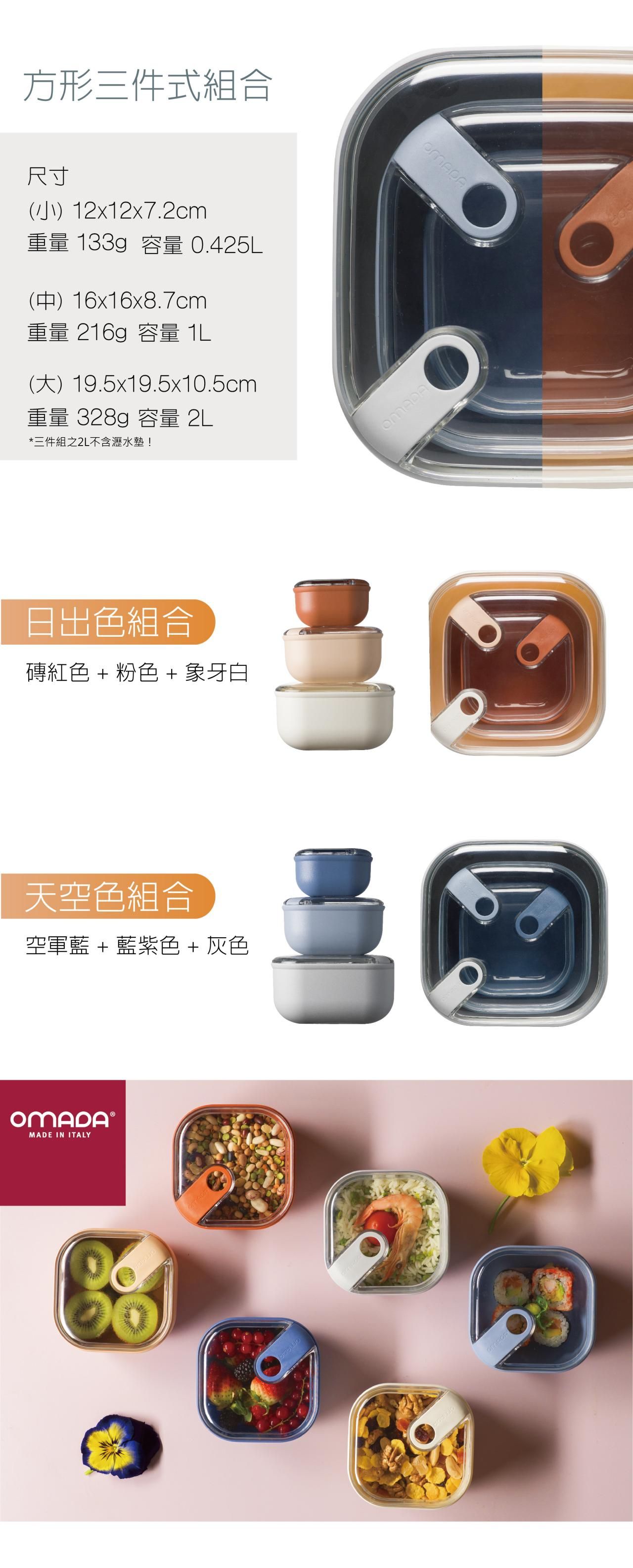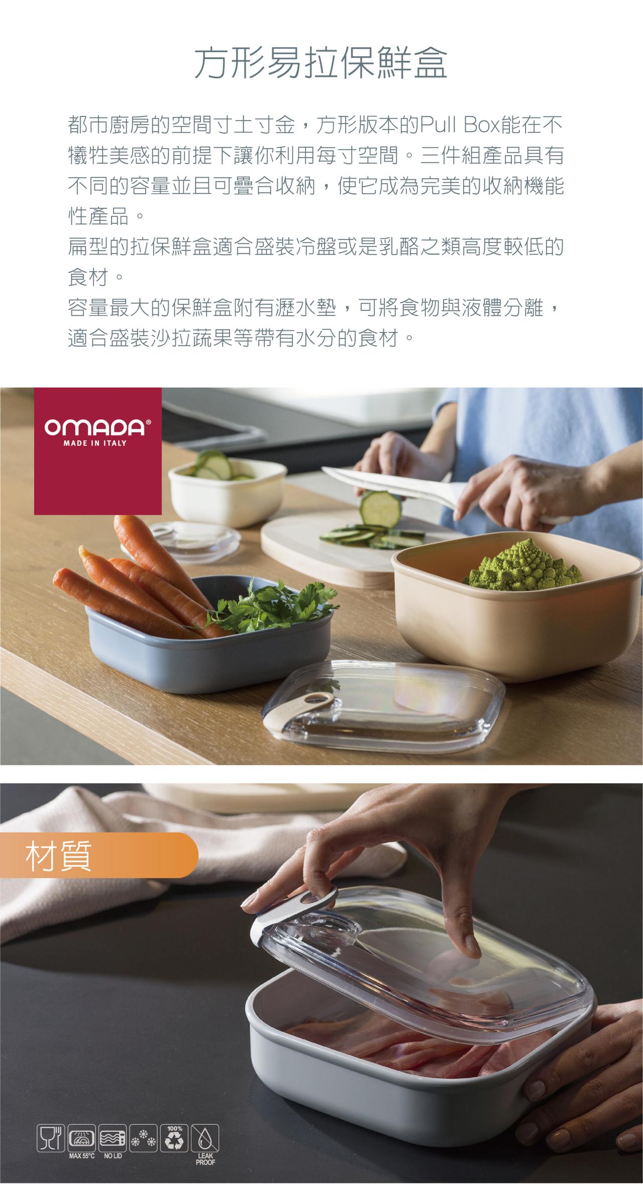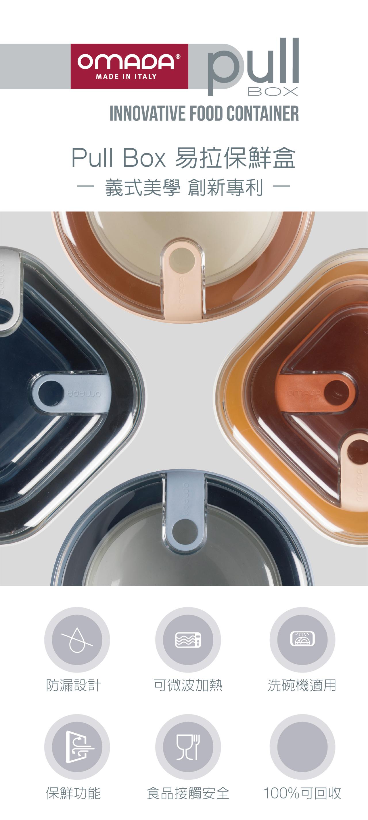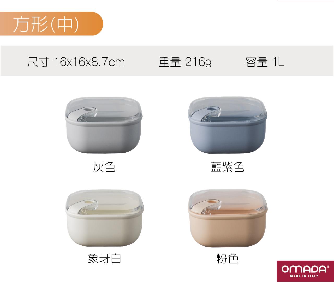 OMADA Pull Box易拉保鮮盒M6651 方型/扁/1L 2入組 - 灰色+藍紫色