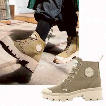 PALLADIUM PALLABASETWILL拉鍊帆布美腿靴 女款 橄欖綠 96907 - 7 (24cm)