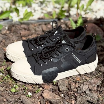 PALLADIUM 放大翻玩經典中底鑽石菱紋元素,大膽突破 PALLADIUM 硬派軍靴印象,重新定義街頭潮流打造獨一無二「PALLA ACE 鬆餅鞋」,延續特殊雙層楦頭設計,側面帶來酷似花瓣的既視感,防護再提升,搭配側踝低筒剪裁鞋身,完美修飾腿部線條、超顯腳小,帶來整體纖細、修長的視覺比例,提供夏日帆布鞋的個性選擇。