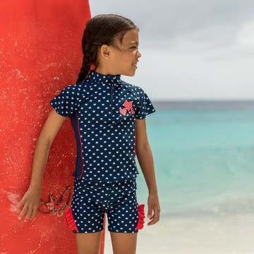 德國PlayShoes 抗UV防曬短袖兩件組兒童泳裝-愛心荷葉邊 - 98/104