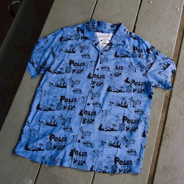 POLER ALOHA SHIRT 夏威夷衫 柔軟涼感嫘縈襯衫 印花藍 - L