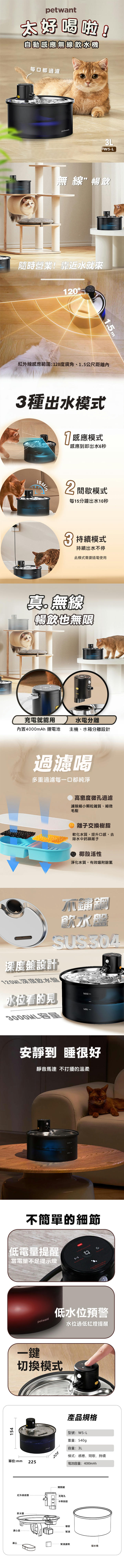 MATTTE|UVC 殺菌無線馬達寵物飲水機 (寂靜黑)1.2版