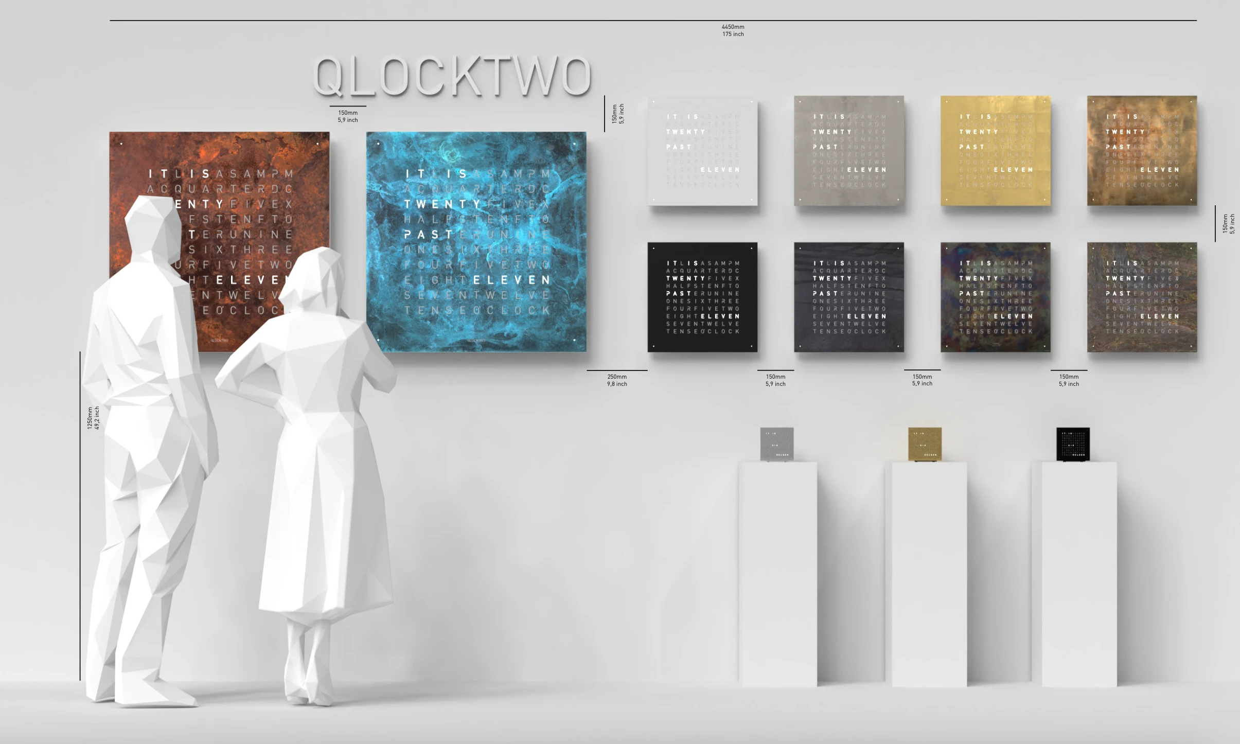 - QLOCKTWO EARTH 45 尺寸(高 × 寬 × 深): 450 × 450 × 22 mm