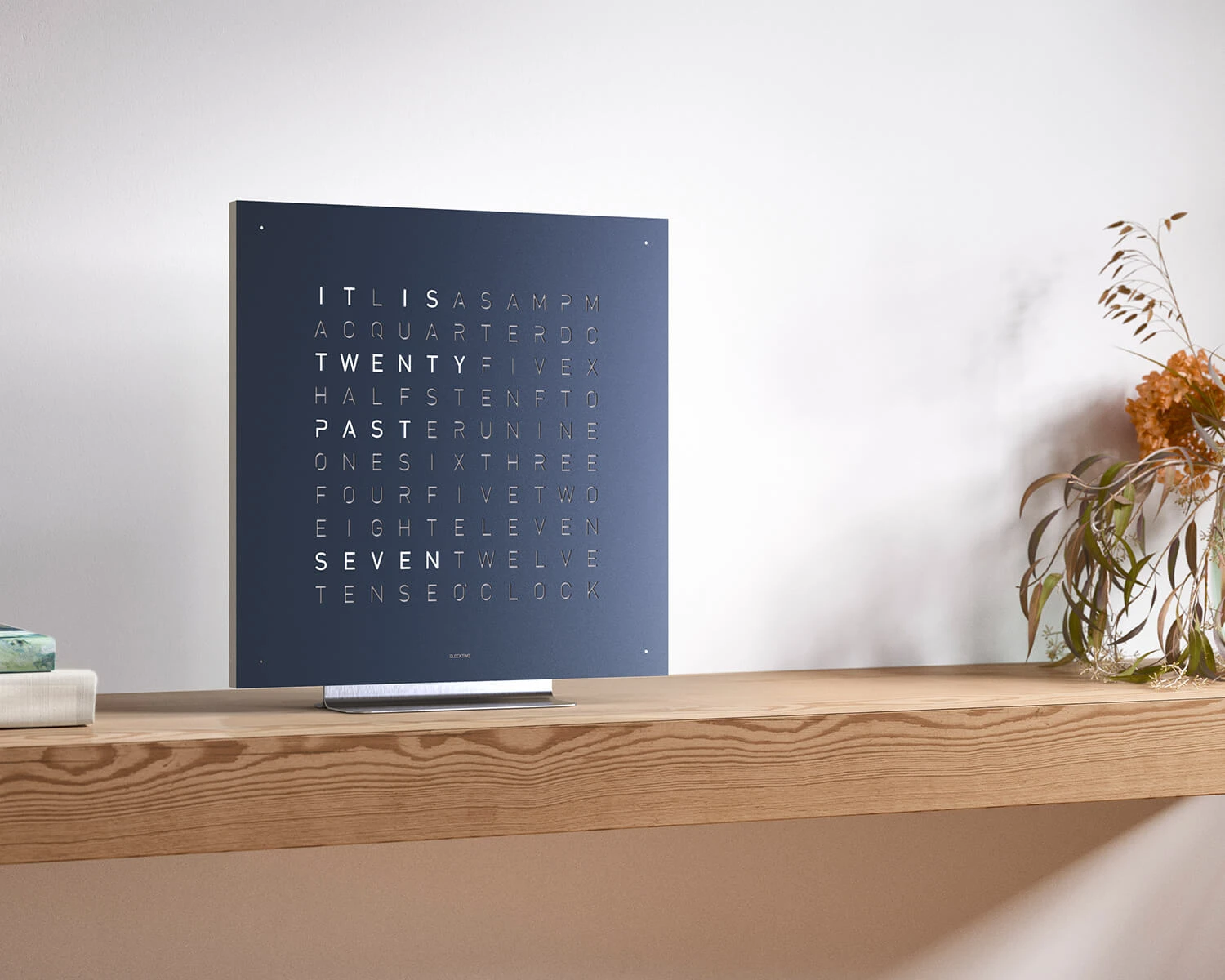 - 購買 QLOCKTWO EARTH 45 系列時鐘皆有隨安裝盒附送一壓克力底座,但部分款式(如 METAMORPHITE、DESERT、GLINTSCAPE、SILVER & GOLD、GOLD、PLATINUM)不建議使用,避免損壞特殊材質表面,若有底座需求請加購 EARTH 45 STAND搭配使用。