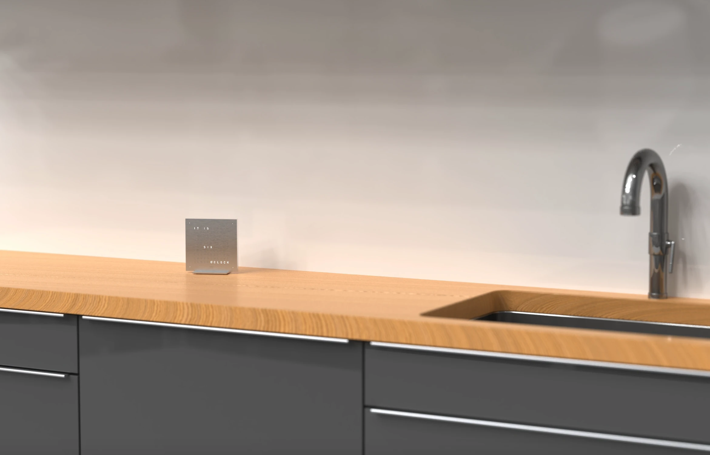 QLOCKTWO EARTH 13.5 能可靠地喚醒您或提醒您的行程,先以柔和的方式響起,然後逐漸加強音量。要開啟或關閉鬧鐘功能,只需按下時鐘背面的鬧鐘按鈕。