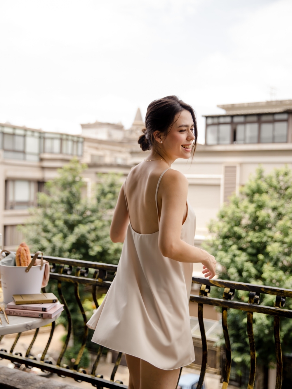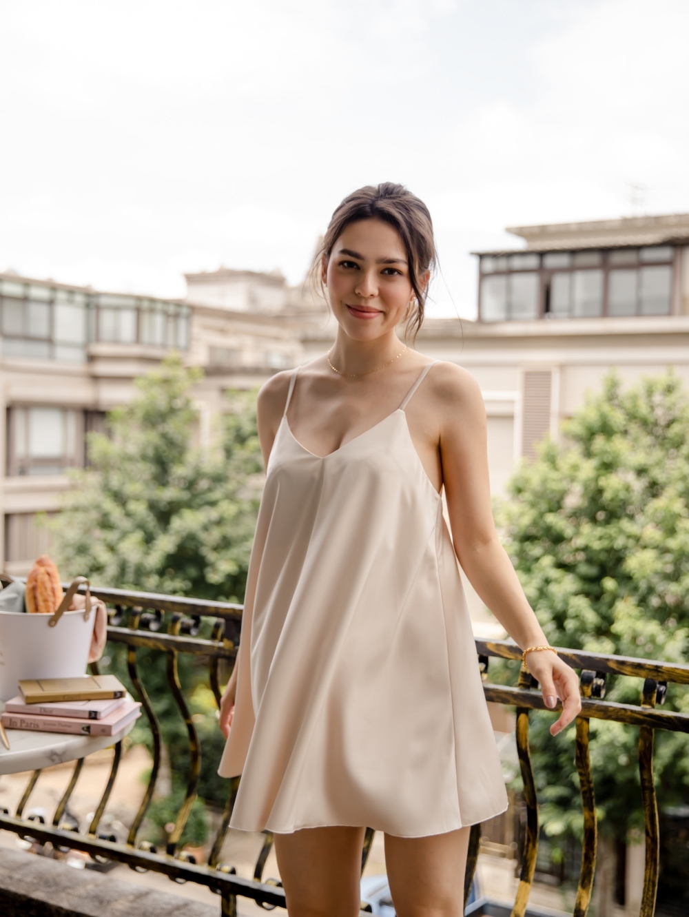 Rising Boutique 設計款柔霧光感細肩帶洋裝-奶油杏 - 單洋裝
